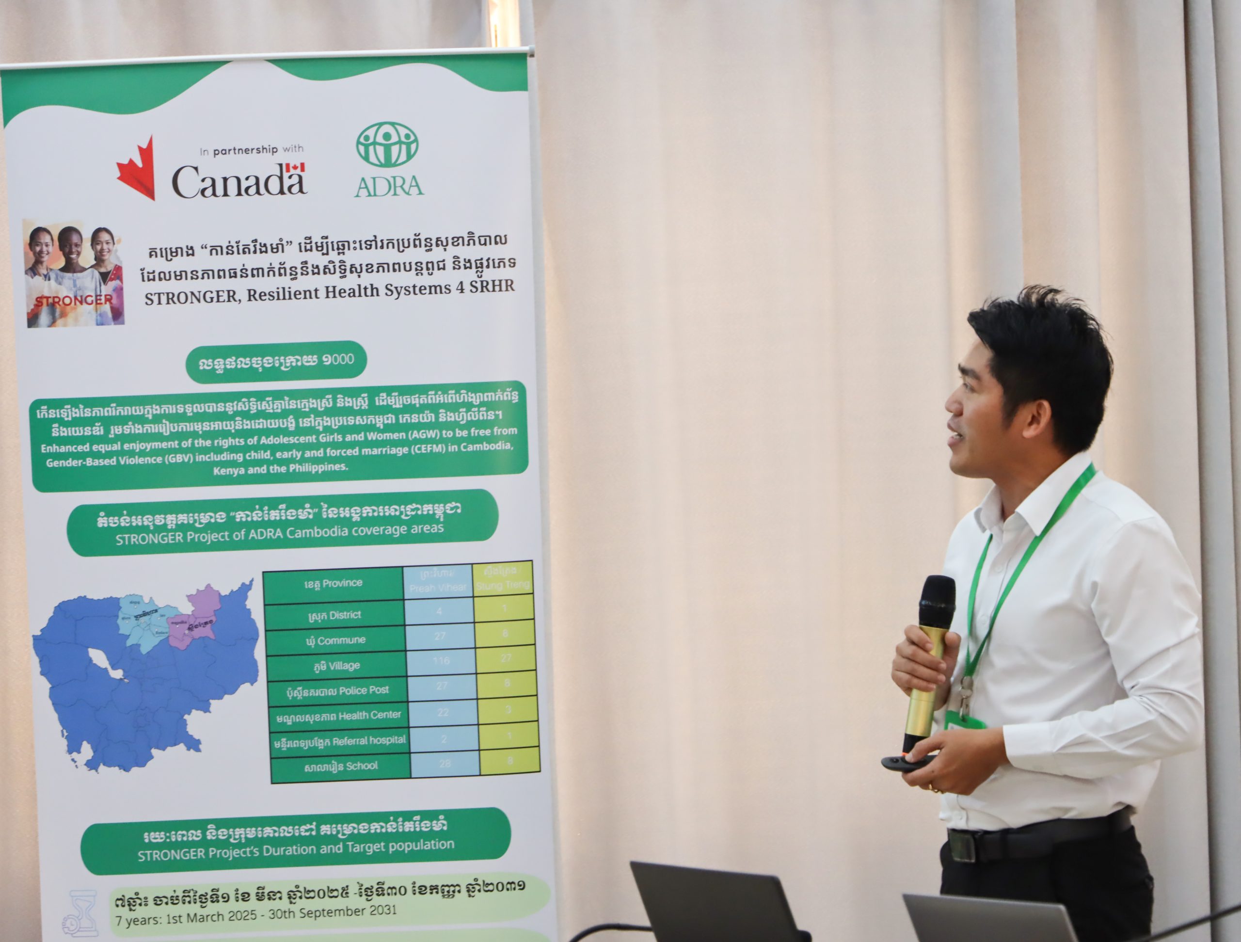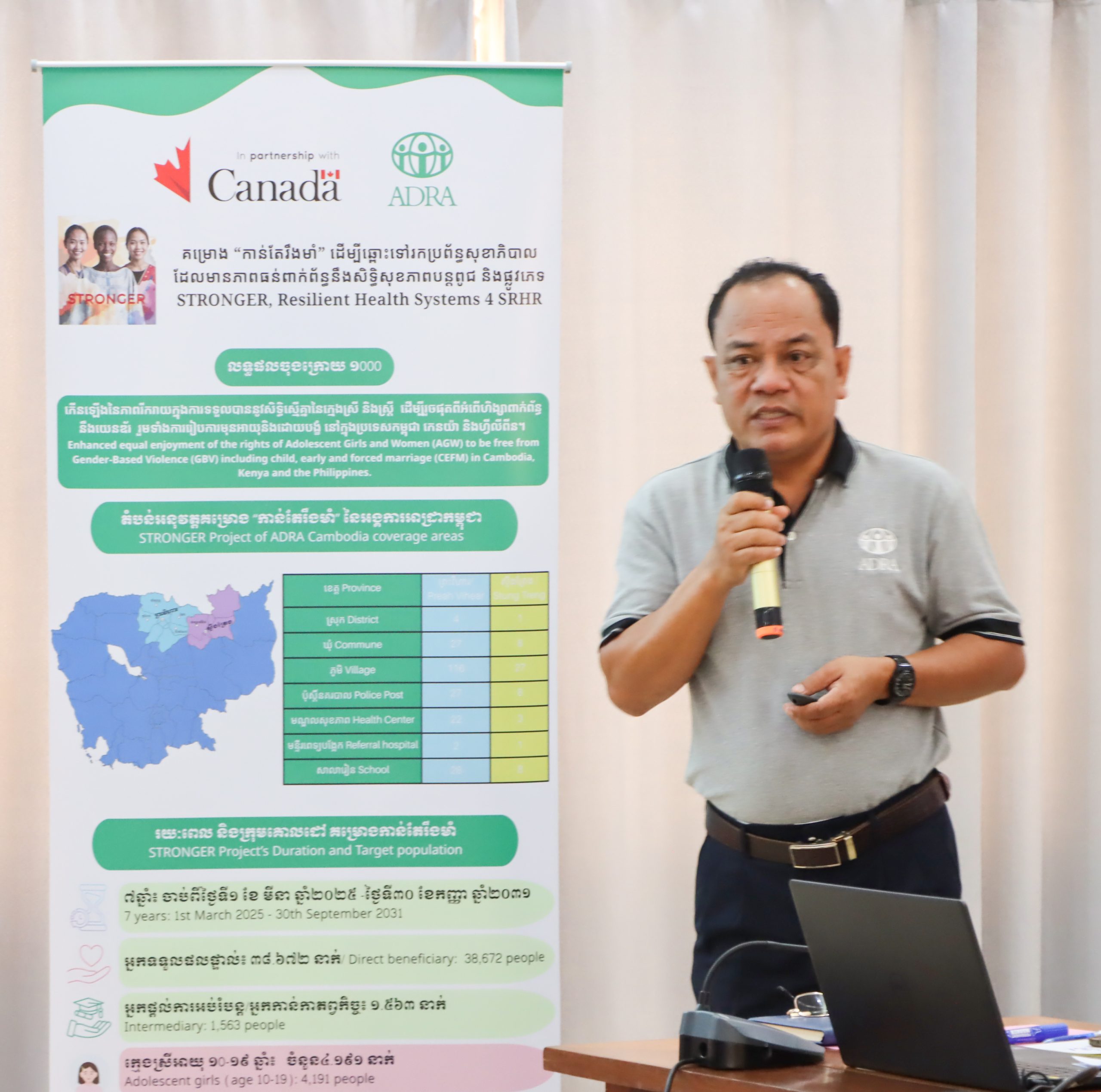In Cambodia, the STRONGER Project will reach 38,672 direct beneficiaries, including adolescents and adults, while strengthening the capacity of 1,563 duty bearers across Preah Vihear and Stung Treng provinces, covering 5 districts, 35 communes, 25 public health facilities, 35 police posts, and 143 target villages.