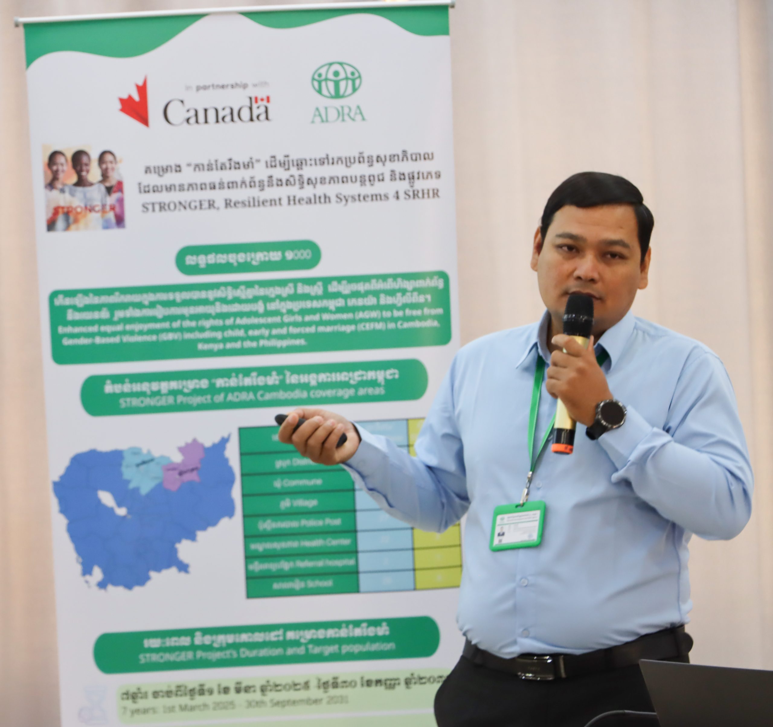 Ms. Gracia Wenas, Representative of ADRA Cambodia, said: “The STRONGER Project supports Cambodia’s efforts to strengthen health systems, address gender-based violence, and advance national priorities aligned with the Sustainable Development Goals. Strong collaboration with government and community partners is essential, and this workshop marks an important starting point for shared learning and partnership.”